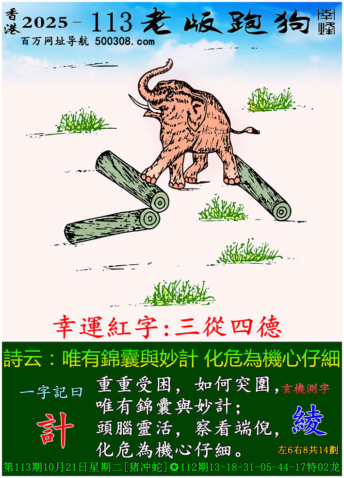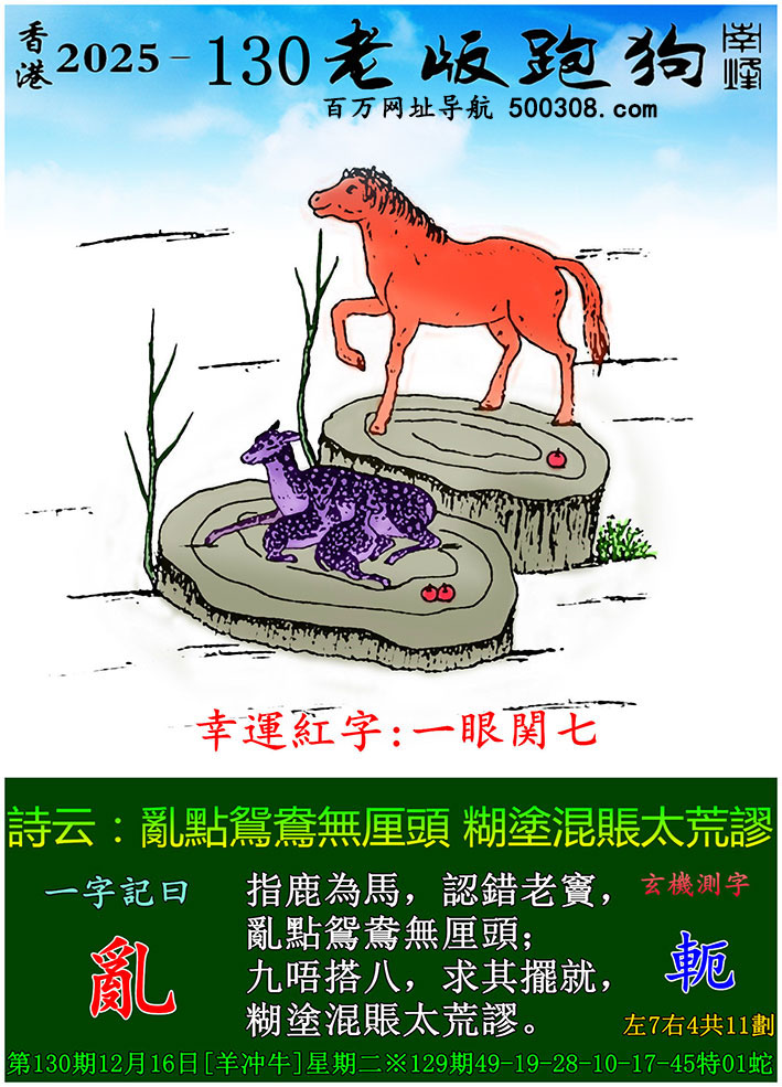 130期老版跑狗一字記之曰:【亂】