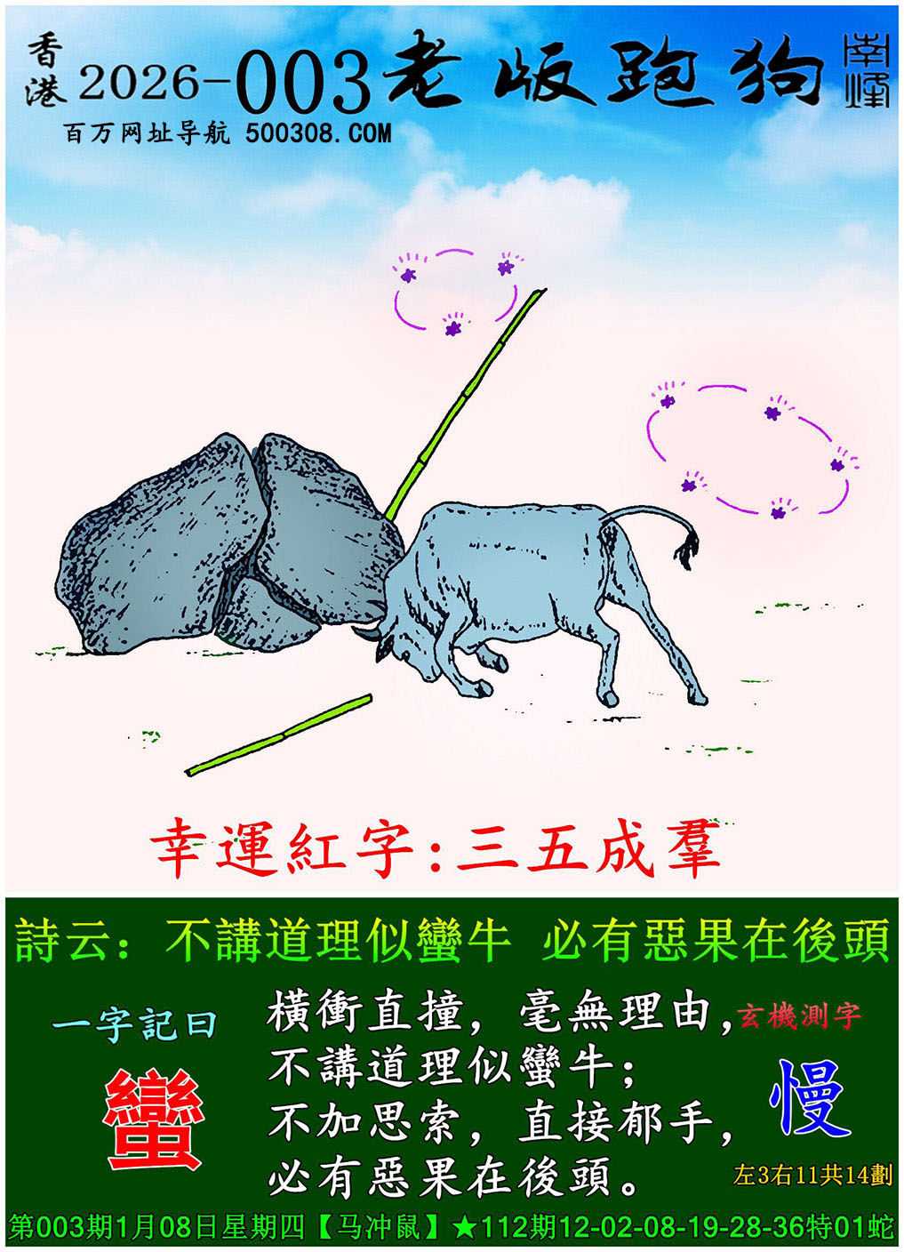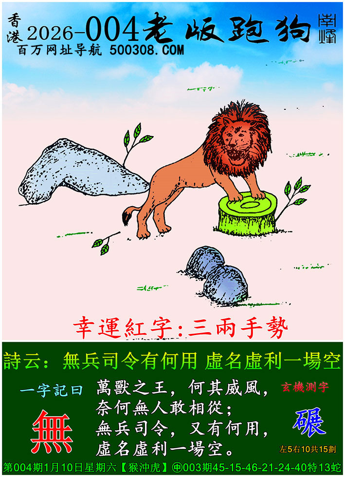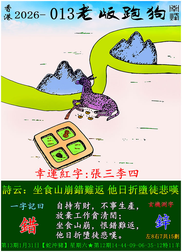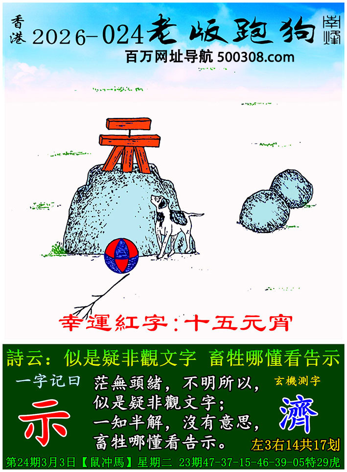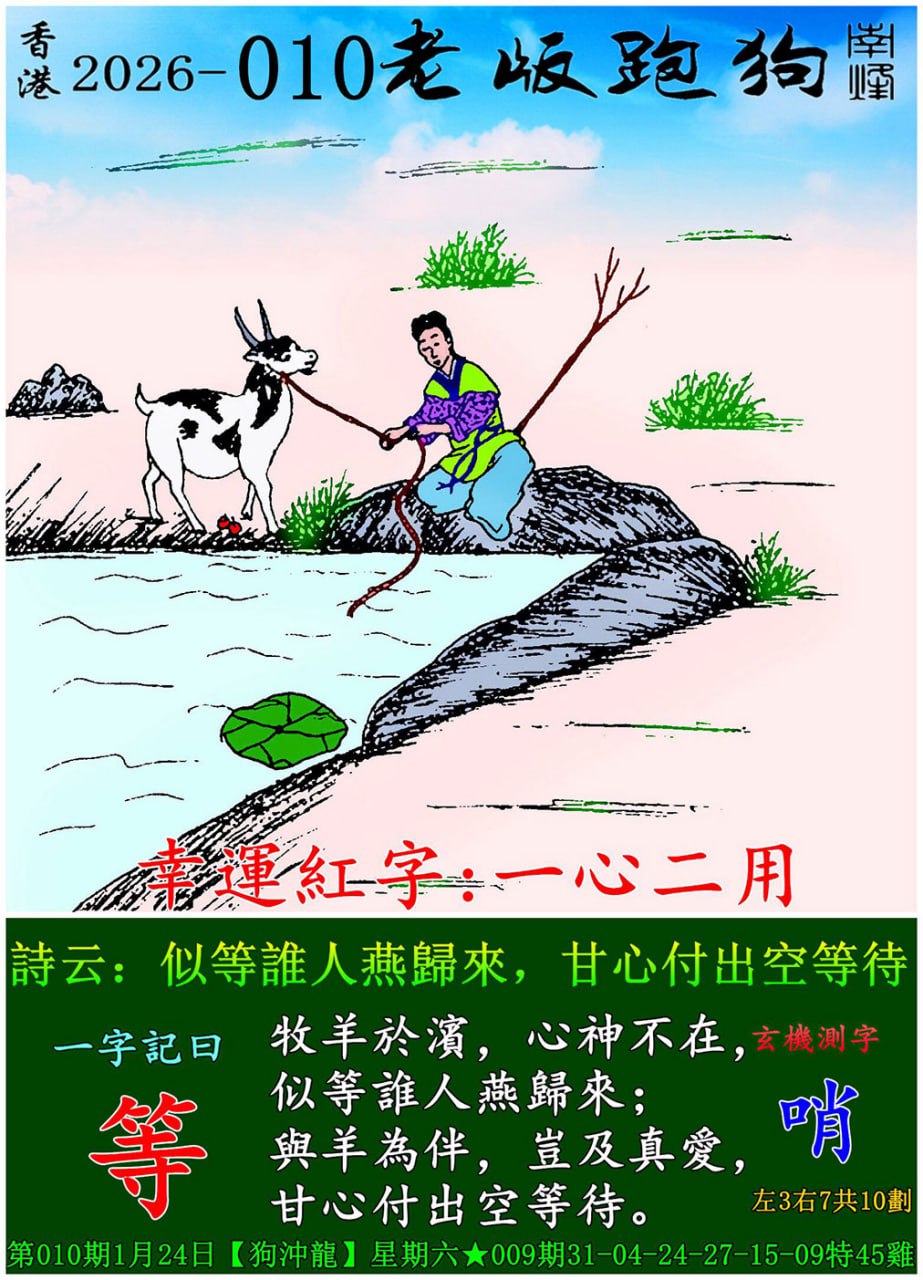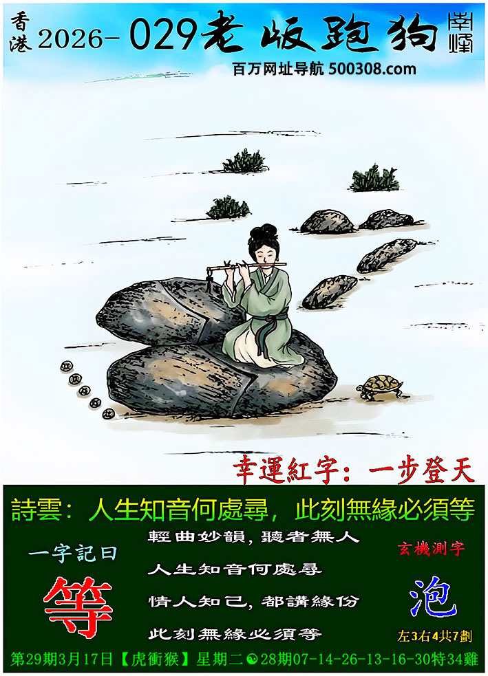 029期老版跑狗一字記之曰:【等】